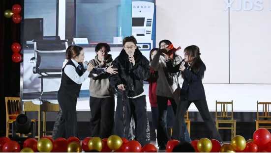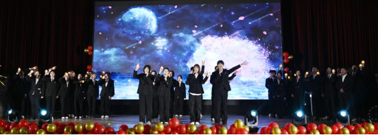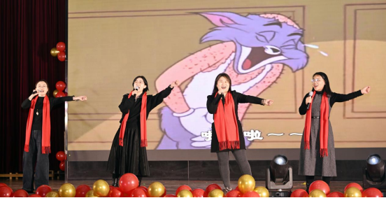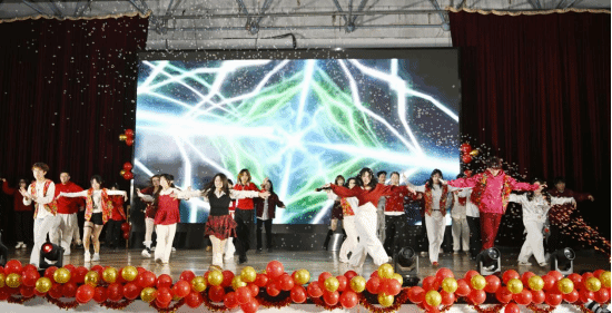 歌曲类节目则以声传情、浸润心灵。郑世艳老师带来的独唱《后来》,旋律温柔婉转,将歌词中的细腻情愫与人生感悟娓娓道来。节目不仅引发观众对青春岁月的怀旧共鸣,更以含蓄的表达引导青年学子树立正确的爱情观与价值观,懂得珍惜时光、坚守责任。教师代表合唱的《倔强》,以激昂的节奏诠释了“逆风飞翔、与众不同”的青春态度,传递出永不言弃、奋勇拼搏的精神力量,激励学子们要勇于奋斗。两院全体学生会成员身着统一服装带来的歌曲串烧,串联起晚会的美好瞬间,既展现了我校学生工作的扎实成果,更是文化育人、集体主义教育的生动实践,让爱的暖流在现场久久回荡。